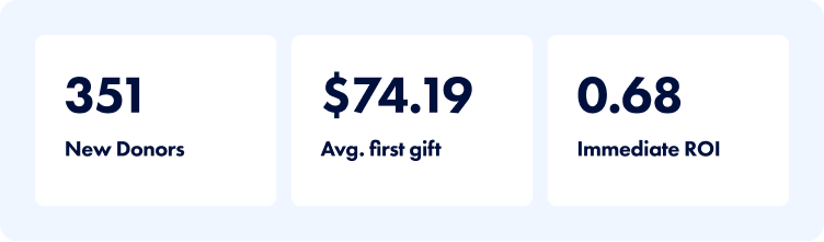 Data-driven approach delivering strong ROI and scalable donor growth.
